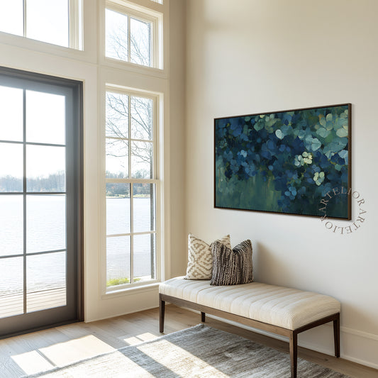Blue Hydrangea Floral Framed Canvas Wall Art, Isaiah 26:3 Christian Peace Painting, Teal Green Botanical Decor | Artelior