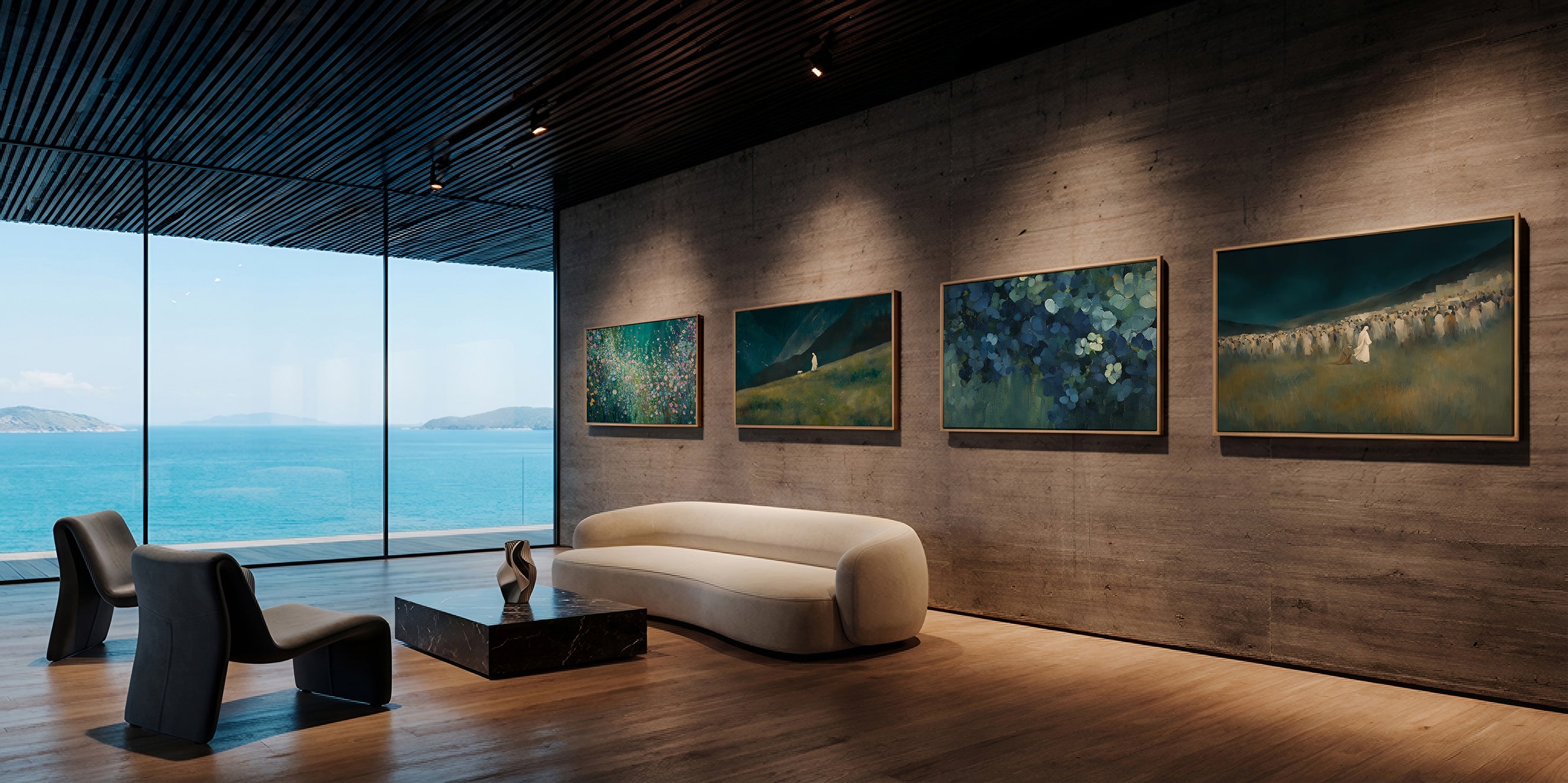 Three Crosses at Calvary Jesus Art – Beige Minimalist Christian Wall Decor | Blessing Brush